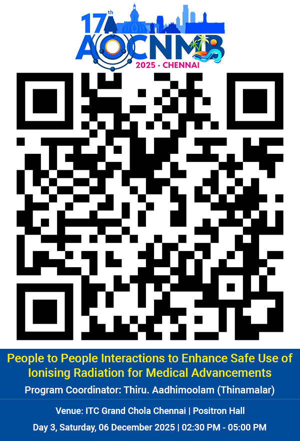 We are excited that the 17th Asia Oceania Congress of Nuclear Medicine and Biology, alongside the 57th Annual Conference of the Society of Nuclear Medicine India will be held in Chennai, Tamil Nadu, India http://aocnmb2025.com/. This global event aims to promote Theragnostic Nuclear Medicine as strategy for addressing global healthcare challenges with cost effective solutions.